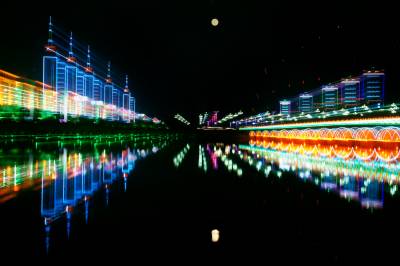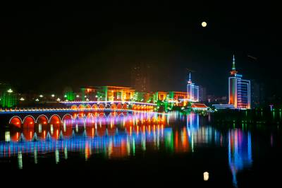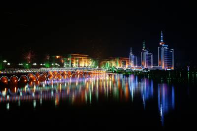 大冶市的夜,在拍摄中途改变焦距.