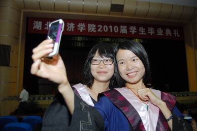 6月24日,湖北经济学院,2010届学生毕业典礼上,毕业生在现场拍照留影。连日来,武汉各大高校迎来”毕业季”,众多毕业生将结束学生生涯,踏入社会,各奔前程。