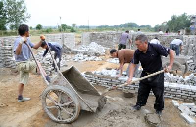 重建受灾房 9月21日,施工人员在孝昌县白沙镇东河村为倒房户集中修建灾害重建房。受前期暴雨影响,白沙镇有50户群众房屋因受灾变成危房或倒塌。为帮助受灾群众解决实际困难,该镇通过争取扶持资金100万元,按照每户2万元的补贴标准用于灾后新房重建。目前,受灾群众房屋重建工作已全部动工,预计本月底可全部建成。 视界网 徐文 张邦泰 摄