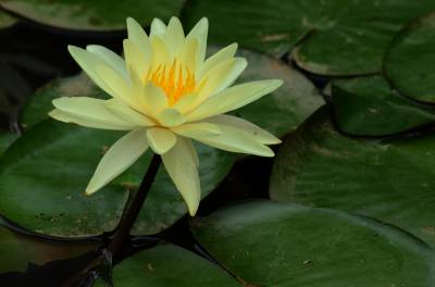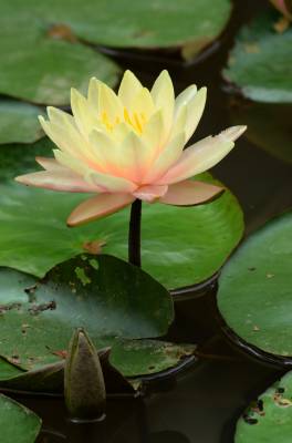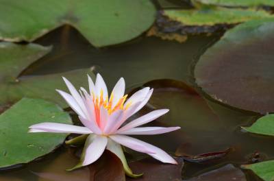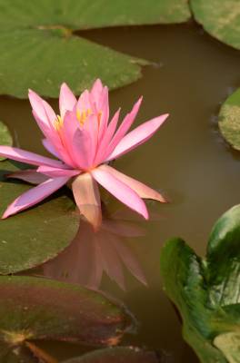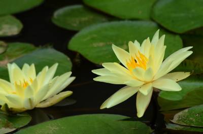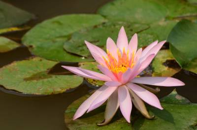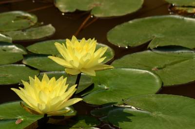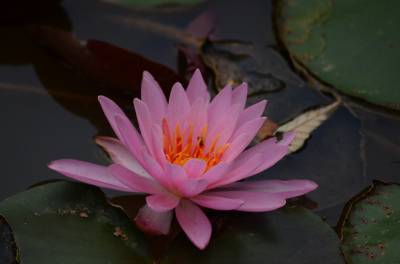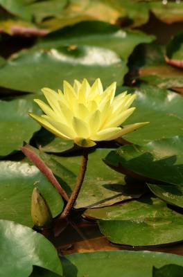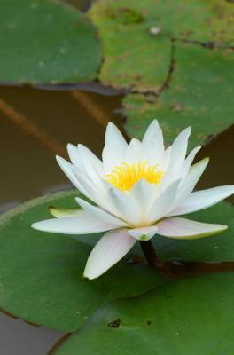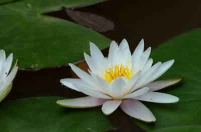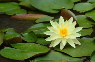 睡莲(学名:Nymphaea L.),多年生水生草本;根状茎肥厚。叶柄圆柱形,细长。叶椭圆形,浮生于水面,全缘,叶基心形,叶表面浓绿,背面暗紫。叶二型:浮水叶圆形或卵形,基部具弯缺,心形或箭形,常无出水叶;沉水叶薄膜质,脆弱。花单生,浮于或挺出水面;花萼四枚,绿色;花瓣通常八片。果实倒卵形,长约3厘米。花大形、美丽,浮在或高出水面,白天开花夜间闭合;萼片近离生;花瓣白色、蓝色、黄色或粉红色,成多轮,有时内轮渐变成雄蕊;药隔有或无附属物;心皮环状,贴生且半沉没在肉质杯状花托,且在下部与其部分地愈合,上部延伸成花柱,柱头成凹入柱头盘,胚珠倒生,垂生在子房内壁。浆果海绵质,不规则开裂,在水面下成熟;种子坚硬,为胶质物包裹,有肉质杯状假种皮,胚小,有少量内胚乳及丰富外胚乳。