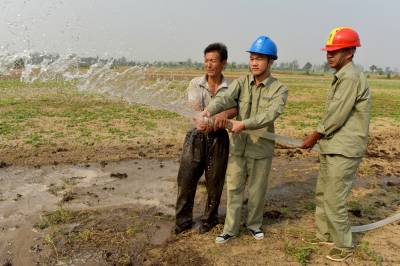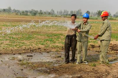 > 电力员工田间地头服务村民抗旱