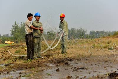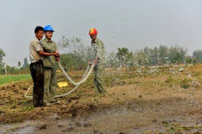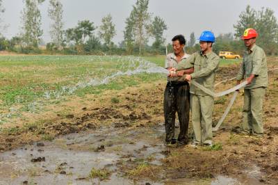 9月23日,老河口市供电公司客户服务中心的工作人员帮助王甫洲村的村民进行抗旱灌溉。 地处鄂西北的老河口市近期持续干旱,电力网格员主动走进田间地头,帮助辖区的村民进行抗旱灌溉,缓解旱情。