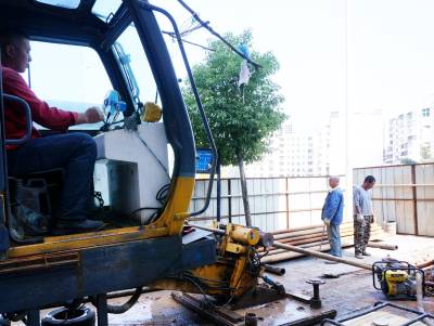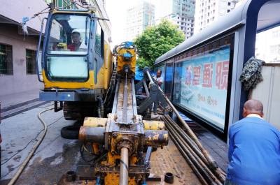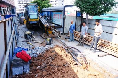 9月23日,管道工人正在十堰市郧阳区沿江北路东侧操作顶杆钻孔机在人行道地下钻孔,为保护市容市貌不被破坏,采用顶杆钻孔机己钻孔1200多米。预计10月底郧阳汉江南北两岸的部分家庭将首先用上天然气。 图为顶杆钻孔机正在人行道地下钻孔时的情景。 视界网周家山 摄