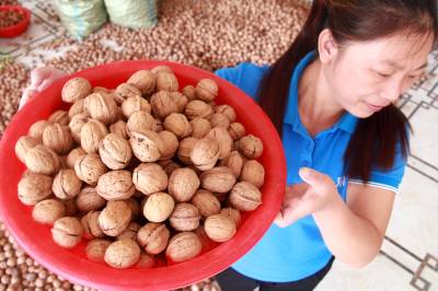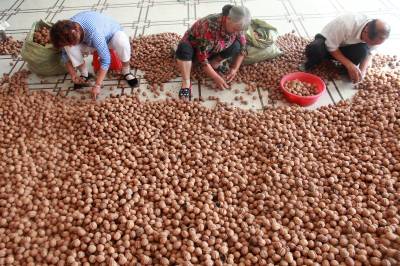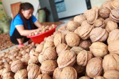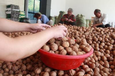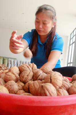 近年来,湖北省十堰市郧阳区通过“公司+合作社+基地+农户” 的经营模式,大力发展核桃产业,带动当地农民增收致富。目前,全区已发展核桃种植面积15万亩,挂果核桃面积4万亩,预计今年干果产量可达150万公斤,直接带动农民增收3000万元以上。(视界网 曹忠宏 摄)