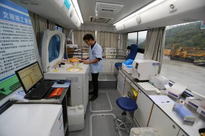 到流动体检车来汉十高铁工地为农民工兄弟免费体检