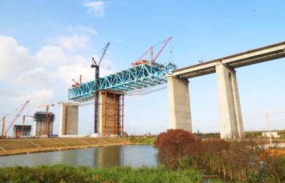 中铁大桥局沪通长江大桥南岸钢梁架设实现重大突破