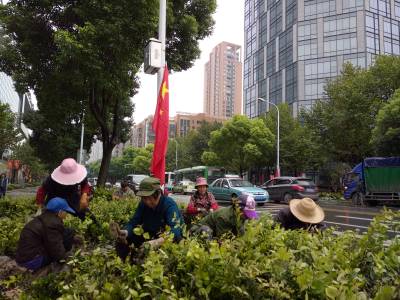 10月1日,是中华人民共和国成立67周年的国庆佳节。当日上午,汉口中山大道武汉天地路段两旁的绿化隔离带,有20余名绿化员,在迎风展招的鲜艳五星红旗下,为美化绿化武汉而辛勤劳动,进行大叶女贞观景树抢栽,他们用劳动的成果,祝祖国母亲生日快乐!愿江城绿色更美好!