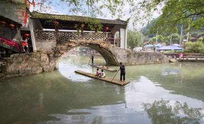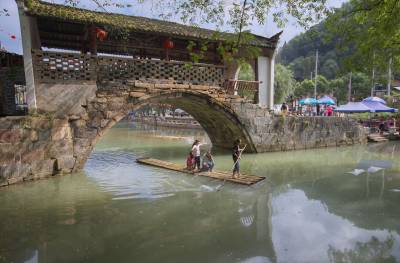 10月4日,游客们在咸宁市咸安区刘家桥景区游玩。国庆假期期间,不少游客来到位于咸宁市咸安区桂花镇的刘家桥景区,感受当地古民居村落风俗,享受亲近山水所带来的乐趣。刘家桥古民居群是汉高祖刘邦胞弟“彭城王”刘交后裔于明代崇祯年间迁居于此始建,被誉为“楚天民俗第一村”。当地以刘家桥村古民居群落为主景区,打造以旅游休闲观光产业,让这座蕴含丰厚楚南文化特色和自然风光的古村吸引众多游人慕名前来。