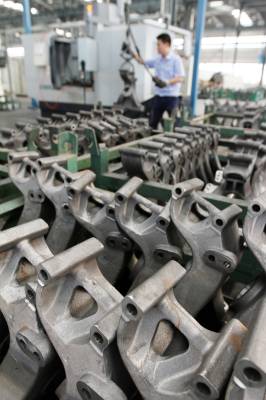 10月4日,全国重要的汽车平衡悬架、挂车悬架等零部件生产集散地,房县东城经济开发区十堰星源科技有限公司工人正在加工生产汽车支架。这家公司原来从事来料加工或按照客户需求进行定点生产汽车配件,产品没有核心竞争力。近年来,公司与华中科技、武汉理工大学联姻,协作新产品的研发和新技术的开发,生产的液压油箱、汽车平衡悬架、消失模铸造、连通轴等汽车新配件质量,在国内同行中处于领先地位,产品在上海、山东、武汉等大中城市供不应求。目前,汽配件基地正在扩建、扩能,生产线全部投入运行后,年均实现生产汽配总成近30万辆份,利税4.2亿元。