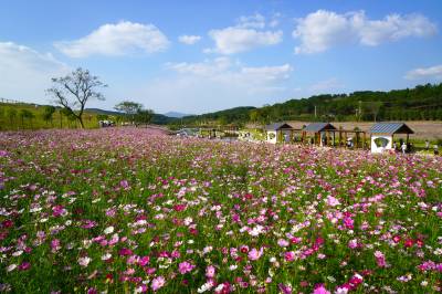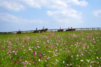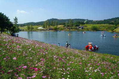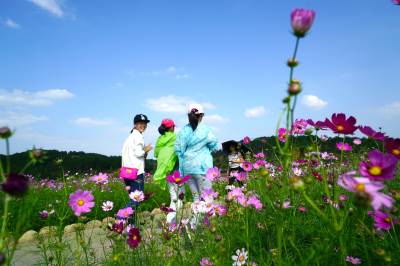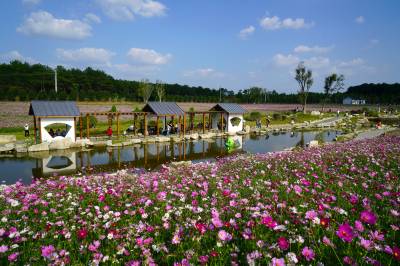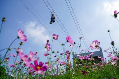 金秋十月,武汉市黄陂木兰草原景区的三千亩格桑花在十月迎来盛花期,吸引周边多个省市的游客前来,就近体验草原风情,5日,游客陶醉在木兰草原的蓝天碧水,红花绿草之中。