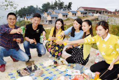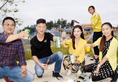 10月6日,游客在保康县过渡湾梅花寨采摘猕猴桃、游玩、野炊。 国庆长假期间,各地游客纷纷前往山区保康各大景区、乡村进行生态游、乡村游,到山野中捡板栗,摘猕猴桃,野炊,以不同方式度过充实的假期。 (视界网 陈泉霖 摄)