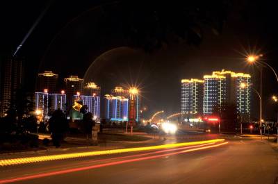 随州建立地级市以来,地方政非常注重城市建设,城市形象日趋提升,街道整洁了、楼房升高了、城市亮化了。这是2010年6月9日拍的白云湖滨湖湾夜景。