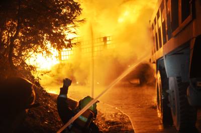 事发地为盘山公路,距离县城约60公里,且多为上坡路段,在几公里外就能看见火光映红了半边天空,浓烟呈蘑菇云状往上窜。消防官兵到达现场后看到,一辆满载赤磷的货车正在猛烈燃烧,火光冲天,浓烟滚滚,随时都有发生爆炸的危险。