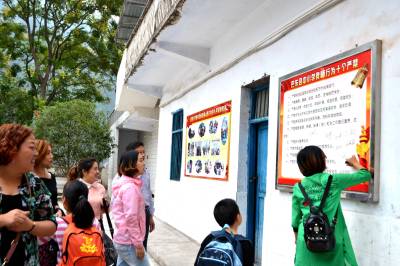 学生见证承诺 东坡小学师德师风警钟长鸣 10日,巴东县官渡口镇东坡小学教师在《巴东县中小学教师行为十个严禁》警示牌上签名。