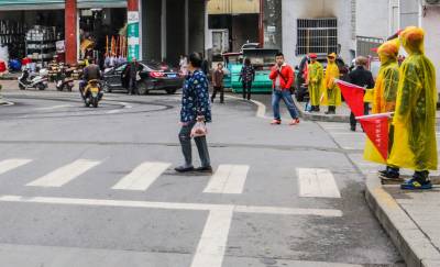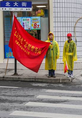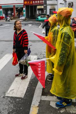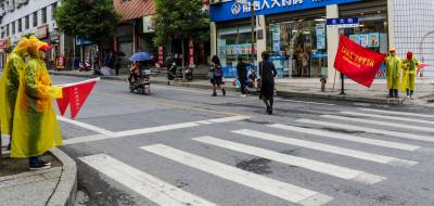 2016年10月9日,竹溪县实验中学“七彩阳光”志愿服务队在县城车流人流密集,交通事故多发地段的东城角段护卫行人按交通规则过马路行走斑马线。 近两年来,竹溪县各行各业包括学校、居委会都前赴后继涌现出为促进环境卫生、道路安全、社会文明,经济发展而奉献自我的志愿者(视界网温大树摄)。