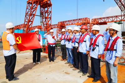 本报讯(通讯员 孟庆虎) 近日,中铁大桥局沪通长江大桥29号墩的党员在党支部书记戴贤荣的带领下,他们在施工现场面对党旗,重温入党誓词,不忘初心,感悟责任。