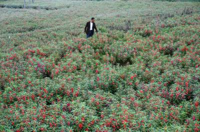 10日10日,技术人员正在十堰市郧阳区安阳镇药材种植基地观测白术生产情况,这是今年3月成立的十堰启武中药材种植专业合作社投资310万元流转5个村12个组3000亩药材种植基地,基地内种植白芨、牡丹、菊花、白芍、板兰根、决明子、白术等30多种中药材,有180户贫困家庭485亩土地入股合作社,198人贫困村民在合作社就业,人均增收1.2万元。 周家山 摄