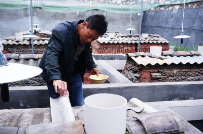 10日10日,十堰市郧阳区安阳镇鞍子山移民村村民成祥国正在自家后园为蝎子喂食。成祥国今年40多岁,因南水北调中线工程从汉江边水位线下北移安置,外出打工几年无法照顾家庭和孩子上学。2014年他回到鞍子山移民村,买来蝎子在自家后院投资2万元养起了庭园蝎子,三年来已繁殖大小蝎子15万只,今年开始外销蝎子,第一单就挣了3000元。如今成祥国就近在家门口打工,即能照顾家庭生活,又靠发展庭园小养殖脱贫致富。 视界网周家山 摄