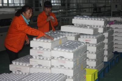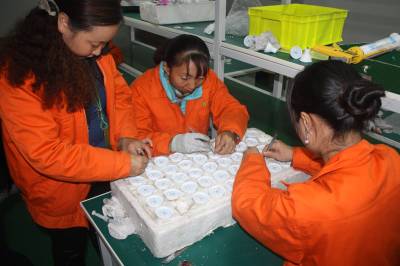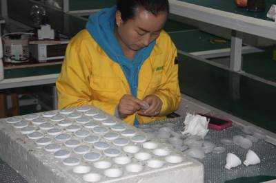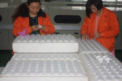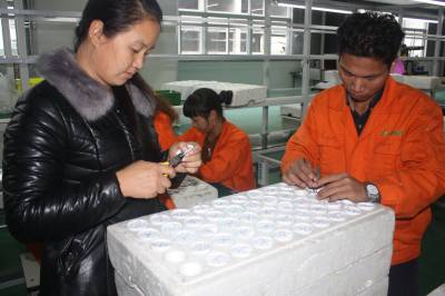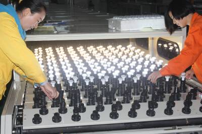 11日,在鹤峰县太平工业园里的湖北科迈特光电科技有限公司车间里,工人们正在抢时间加工出口灯泡。 今年33岁的鹤峰县太平镇申家湾村民曾敏在宁波灯具厂打工12年,从2013年回家乡太平镇创业,成立湖北科迈特光电科技有限公司。目前个人投资2000多万元,今年4月租地生产节能灯,安排家乡贫困户87人到厂就业,出口到东欧西欧和南北美节能灯70万只,创外240万美金。(湖北视界何吉安)