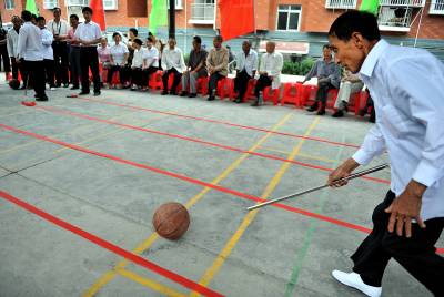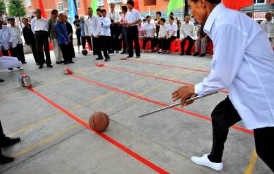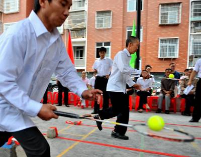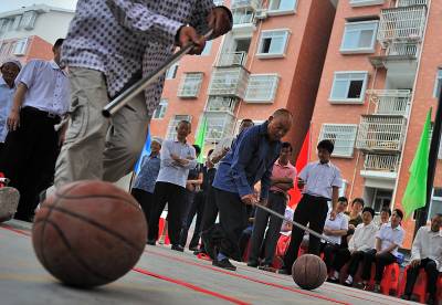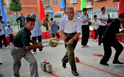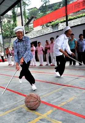 25日,来自宣恩县城市福利院和各乡镇中心福利院近200名五保老人参加由该县民政部门举办的城乡福利院运动会。老人们分别参加15米托球往返跑、赶”猪”(篮球)往返跑、乒乓球定点投准、套圈、双人夹球15米跑等项目的比赛。由于许多老人年岁已高,她们的”笨手笨脚”使观众们笑得前俯后仰,比赛场面十分热烈。(视界网签约摄影师:宋文摄)