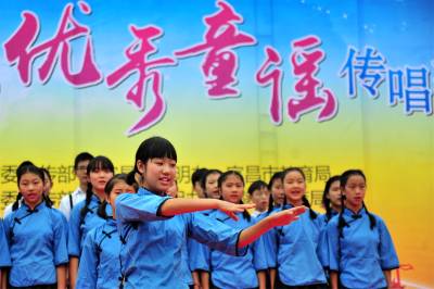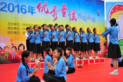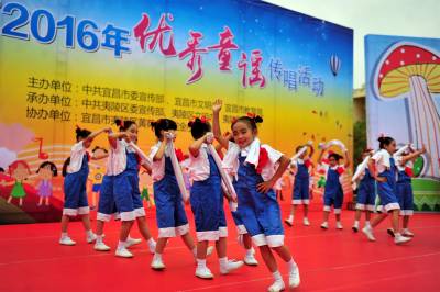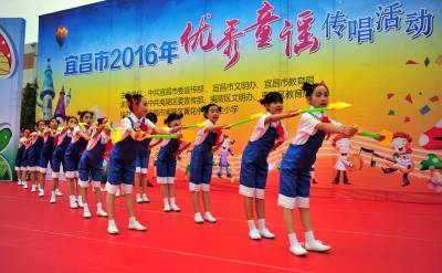 近年来,宜昌在全市未成年人和文学创作爱好者中广泛征集描绘中国梦,倡导勤俭节约,引导未成年人爱学习、爱劳动、爱祖国的优秀童谣,并组织开展优秀童谣校园传唱和展演活动,进一步丰富广大少年儿童的精神文化生活,使他们在传唱优秀童谣中陶冶情操,快乐成长,积极培育和践行社会主义核心价值观,做有一个有道德的人。视界网 张国荣 摄