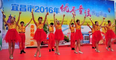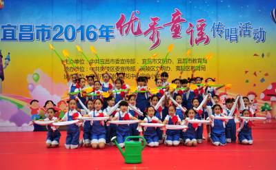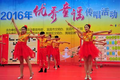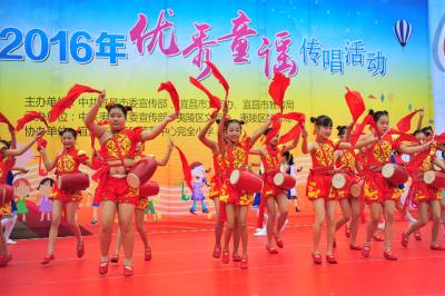 2016年10月13日,宜昌市2016年优秀童谣传唱展演活动走进夷陵区黄花镇中心完全小学,来自黄花、分乡两个乡镇5所中小学的孩子们展演了优秀童谣获奖曲目,歌舞、表演唱、快板舞等丰富多彩的童谣节目,生动展现了未成年人积极向上的精神风貌。