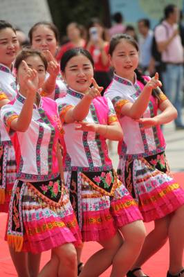 土家歌舞醉客人 地处宜昌上游的长江两岸山山岭岭之中,世世代代居住着能歌善舞的土家族人民。众多外地来客在长阳清江画廊和三峡人家所到之处,都有土家小伙和土家姑娘们唱着巴山山歌,跳着土家舞蹈,歌之舞之,笑遂颜开,用丰富多彩的土家文化为外地人奉上了视觉盛宴。图为土家妹子在武落钟离山演出土家歌舞。 谷城县城粉阳路33号(宣传部)帅瑜 摄 (手机13972211958邮编441700)