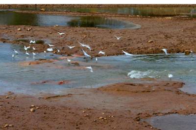 10月16日,一群白鹭在房县城区马栏河半岛湾段嬉水。当地投资6亿多元,综合治理贯穿城区中小河流,依法关闭城区河流沿岸造纸、黄姜等“五小”污染企业18家,从源头堵塞生活污水和工业废水向河道排放,使昔日的“臭河”,今朝变得清澈如镜。水生态环境的改善,造福了广大市民,引来了成千上万只白鹭、野鸭,为山城房县添加了一道靓丽的风景线。