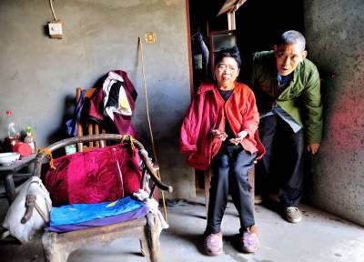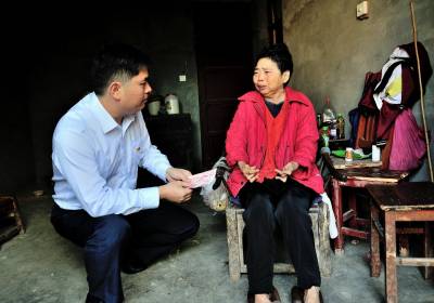 10月17日,十堰市郧阳区刘洞镇骆庄村二组村民曹香条从该区农商行副行长黄明手中接过慰问金后,感动的热泪盈眶。她感慨地说,没有共产党,就没有我这个特殊的家,我要永远感谢共产党。 曹香条,现年64岁,患类风湿关节炎瘫痪卧床40多年,手脚严重变形,生活不能自理。丈夫腰椎骨受伤变形弯曲,失去劳动能力,两个孩子分别寄养在叔父和舅舅家长大成人。(视界网 吴成林 摄)