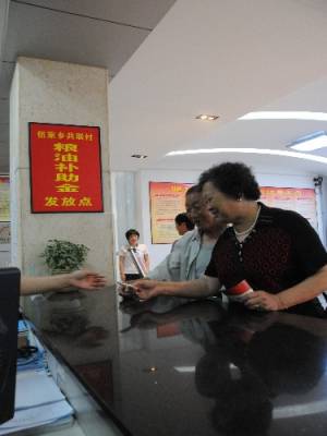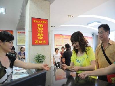 (邹榜华、龙丹)6月27日,伍家岗区共联村1800多名村民排起了长队领取粮油补助款。从今年7月份开始,该村村民每月每人将有50元的粮油补助款。人均每月20斤大米、2斤食用油的补助,按照市场价格换算成补助金额,存入居民个人账户,经初步计算,该村每年将为此支出130万元。村支书彭正平说,选在七一前夕发放粮油补助款是为了让村民记住,在党的领导下我们的日子才能越过越红火。