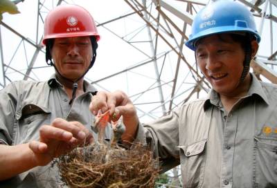 许多鸟类喜欢把鸟巢筑在高压线路杆塔绝缘子串上方的危险部位,如果不及时清扫,不但鸟巢里的小鸟有生命危险,如遇上潮湿及雷雨天气,极易引起跳闸事故,影响电网安全运行。为了消除安全隐患,6月25日--27日,咸宁供电公司对小鸟们搭建在220kv宝塘线铁塔上的十余座”违章建筑”进行搬迁,把鸟儿的安乐窝搬到附近安全位置,在保证电网安全运行的同时又保护生态环境,更确保了市民的夏季用电。