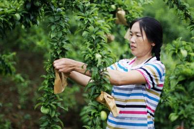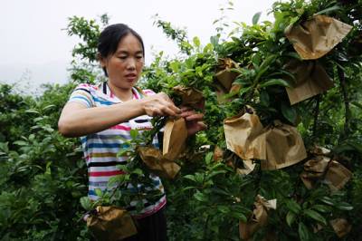 ”穿衣”杏李身价增”一个纸袋5分钱,套袋后色泽光亮、果实增大、含糖量高、防虫防菌,一斤多买3到5块,价格不但翻番,市场上货抢手。”6月28日,竹山县城关镇乔儿沟村王金梅在为中熟杏李品种”穿衣”时介绍说。果树套袋是竹山县积极推广的一项果实无公害生产技术。该县十分重视农业实用技术推广,农技人员定期对果农进行培训指导,使1200多户果农利用实用技术增收。(本报视界网章磊摄)地址:竹山县交通局章磊电话:15972574118