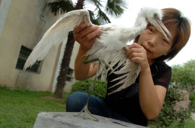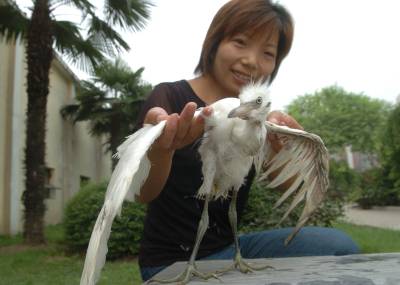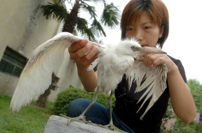 6月28日,襄樊动物园里的工作人员为一只白鹭检查伤口,并准备为其安排一次小手术。这只受伤的白鹭是前一天被襄城区特警在其训练场上发现的,小家伙被送到动物园时已经奄奄一息,在动物园工作人员精心的呵护下,小白鹭已经恢复了部分体力。