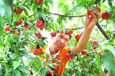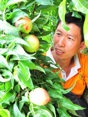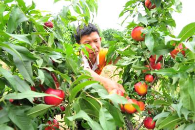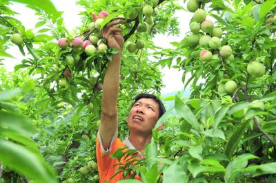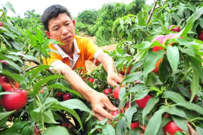 连日来,在湖北省宜昌市夷陵区黄花乡军田坝村一组,农民袁仁军加紧采摘油桃、李子等特色水果,以满足客商订货的需求。 8年前,25岁的袁仁军靠2000元资金起家学技术种水果。期间,他租赁当地村民的承包地10多亩和荒坡地100多亩,投入种苗10多万元,种植油桃、李子等特色水果,建立精品果园苗圃基地,通过滚动发展走上了致富路,并吸纳了当地20多名村民在果园里打工就业。 如今,袁仁军的120多亩果园受益4年来,年销售收入已达80多万元,年支付劳务工资30多万元。本报视界网张国荣摄