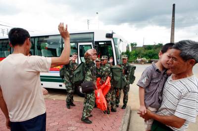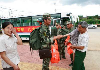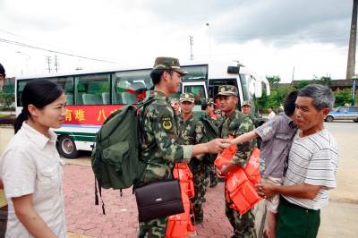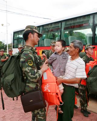 本报 王巍蒋勇童帅通江西抚州报道:武警湖北总队赴江西唱凯抗洪抢险突击队圆满完成救灾任务,28日启程返汉,图为登车前,当地群众与抗洪勇士依依道别。据悉,这支由52名官兵组成的”冲锋舟救援队”在抚河唱凯执行营救转移群众、运送物资等任务,被当地群众亲切地称为”生命方舟队”。