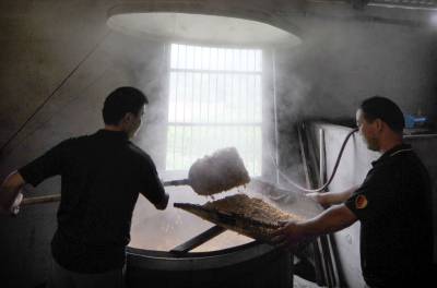 (影像点评)土家烧酒依然香图文/记者刘曙松通讯员肖永奎6月25日清晨,五峰土家族自治县渔洋关镇三房坪村李亚东、林志琼夫妇就开始忙碌起来,阵阵酒香随着李亚东夫妇的忙碌而逐渐浓郁。10多年的与酒相伴,酒成为李亚东夫妇生活和工作的全部。每天凌晨,李亚东就起床,来到酒作坊里生火,蒸煮苞谷。接近两个小时的大火蒸煮,苞谷的甜香溢满了整个酒作坊。闻到苞谷甜香,李亚东揭开了酒蒸木盖,用铁锹将蒸熟的苞谷捞出来,放在撮箕里摊晾。待苞谷摊晾后,李亚东将苞谷堆放在一起,按比例配上酒曲让其发酵。经过数道工序后,李亚东就等着取酒了。清澈带着热度的液体从酒缸里流淌出来,这些温热的液体就是土家苞谷酒。李亚东妻子林志琼主要负责灌装白酒,经过相关检测后,林志琼就用自家申请的简易包装材料进行包装。今年41岁的李亚东夫妇,从事白酒生产10多年,每年生产白酒近5万公斤,销售收入接近30万元,李亚东的白酒作坊是经过改造升级,被保留下来的20多家小作坊之一。不仅如此,李亚东夫妇用酒糟养猪,每年出售20多头商品猪,小日子过得有滋有味。记者手记:别让老手艺砸在造假者的手中”幺妹门前一个坪,苞谷长的像竹林;哥哥用它酿美酒,遍山大曲醉死人……”这段土家情歌,在向人们讲述着一个”酒为媒”的爱情故事。居住在鄂西南大山深处的五峰土家族自治县土家汉子们,无酒不成席,无酒难会友,无酒不成亲。豪爽的土家人,不仅能饮酒,而且善酿酒。自古以来,土家人就擅长以苞谷为原料酿酒,酿造的土家苞谷老烧,成为土家人的兴奋剂和好伙伴。”土家酿酒扑鼻香,咂咂竹管胜壶觞;路过行人醉如泥,家家缸里有琼浆。”这首山歌,描绘出了土家人家家酿酒的热火场面。处处有酒作坊的热火场景,在去年的3月23日甲醇中毒事件中戛然而止。”3.23”甲醇中毒事件成为土家人心口永远的痛。酒是土家人生活中不可缺少的一部分,也是土家民俗文化出彩出神的兴奋点,怎样让苞谷酒重上餐桌,让土家群众喝上安全可靠的苞谷酒?五峰痛定思痛,从去年6月开始,五峰质监部门开展白酒生产加工环节专项整治,添设施、改环境、上包装,对达不到基本生产条件和相关要求的白酒小作坊予以关闭取缔,全县140多家白酒小作坊被关闭淘汰89家,土家苞谷酒焕然一新,重新走上土家人餐桌。五峰县白酒小企业、小作坊不仅能有效转化粮食作物,就地转移农村剩余劳动力,而且对传承民间纯苞谷酒工艺,促进农民增收和方便人民生活有着积极的作用。当地政府对白酒小作坊没有因为一次事件就”一刀切”,一味的取缔关闭,20余家小作坊通过改造升级,达到了白酒生产加工的要求,经过严格整顿后的五峰苞谷酒一样散发着传统的芳香。