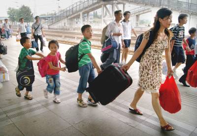 ”留守娃”踏上与父母团聚旅途28日,孝感火车站迎来大批暑期准备北上与父母团聚的”留守娃”。孝感是”建筑劳务之乡”,在东北三省从事建筑的劳务人员有30多万人,留守儿童达30多万。孝感火车站相关负责人称,仅近一个星期,该站输送2000余名留守儿童到东北与父母一起团聚,共度暑假,形成了一股探亲潮。本报视界网李文勇摄地址:孝感晚报新闻中心电话:13995858558