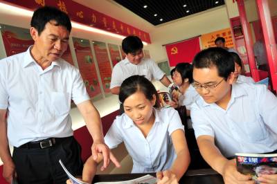 连日来,在湖北省宜昌市夷陵区长江高科电缆有限公司的党建活动中心,公司员工争相开展读书学习活动,车间里党员示范岗带领入党积极分子加紧生产,以各种方式庆祝中国共产党成立89周年。 长江高科电缆有限公司是宜昌市夷陵区一家非公企业。该企业2009年建成了800多平方米集学习、培训和展示为一体的党建活动中心,中心建立以来,公司党委在党员中开展”我为企业献一计”活动,收到合理化建议50多条,采纳实施40多条,增收节支600多万元。同时设立”党员示范岗”,20多名生产一线的党员争先恐后,你追我赶,先锋模范作用体现在班组、示范在岗位。目前,公司80多名员工被吸收为入党积极分子。本报视界网张国荣摄
