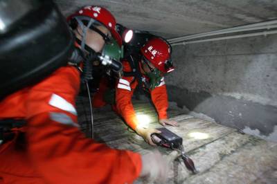 湖北各地市矿山应急救援千人大比武活动,29日在远安县的”湖北省应急救援基地”举行,湖北省首座矿井模拟巷道正式亮相,迎接检验。远安矿井模拟巷道由远安迅达矿山救护中队投资兴建,是”湖北省应急救援训练基地”的一个重要组成部分。。该巷道能模拟各类矿井灾害事故,并能进行实战救援演练。在当日的演练比武中,救护队员们全副武装,进行了闻警集合、领取任务、下井准备、现场急救、救助并引导遇险人员撤离灾区、安装局扇恢复通风、报告情况等十多项内容的演练。专家在地面通过摄像探头进行观摩,并进行指导和点评。