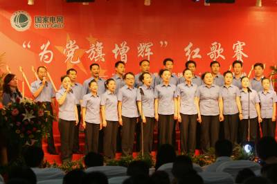 6月29日晚,40名机关党员一曲高亢、激昂的《歌唱祖国》的大合唱正式拉开了鹤峰县电力公司”为党旗增辉”红歌赛的帷幕。 为了庆祝建党89周年,努力践行”亮身份、强素质、当先锋”党内主题实践活动,该公司精心组织了本次红歌赛。14首独唱、6首合唱,来自该公司各基层支部的参赛选手为党的生日倾情献歌。(杨年庆)
