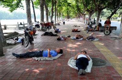 昨日,襄樊市气温攀升至35℃,一些市民为图凉快,直接在林荫道上酣睡起来,在形象与避暑之间,这些市民做出了自己的选择。谢勇
