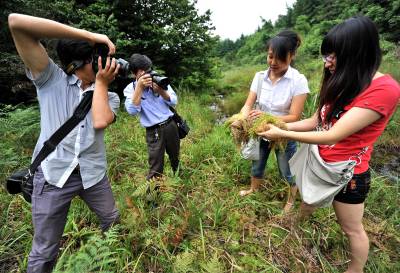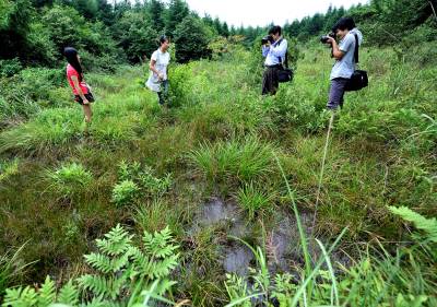 1日,人们慕名来到宣恩县椿木营乡晒坪林场深处,在有”地球之肾”之称的高山湿地边缘欣赏、拍摄高山湿地。据湖北七姊妹山国家级自然保护区相关人员介绍:自2005年以来,华中师范大学、湖北大学、湖南师范大学与七姊妹山自然保护区联合组成科学考察队,对保护区内生物多样性进行考察,最近发现大面积亚高山森林沼泽湿地。这片分布在海拔1800米以上的湿地,初步探明面积在5000亩以上,而相关专家就认为:这是华中地区特有的亚高山森林沼泽湿地群落,泥炭藓湿地面积可能比神农架已发现的泥炭藓湿地面积还要大,实属罕见,极具保护和科考价值。(视界网签约摄影师:宋文摄)