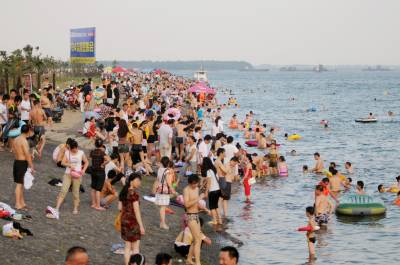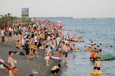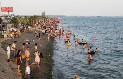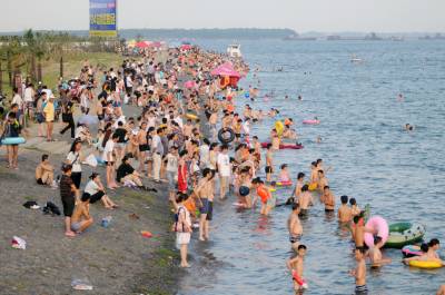 连日来,气温居高不下,襄樊气温达到36度,傍晚下班之后,大批市民涌向鱼梁洲江滩,享受江风和江水的清凉。谢勇摄