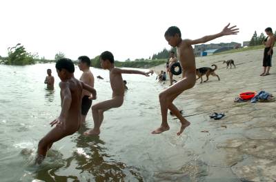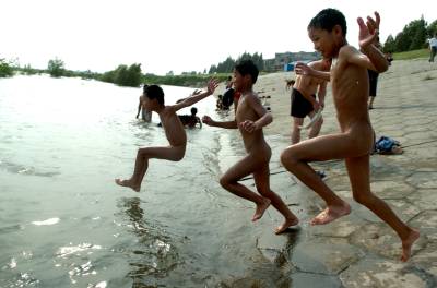 母亲河里好清凉 7月1日,襄樊市最高气温达到37摄氏度,在汉江边的浅水区,一群顽皮的孩童尽情地享受着母亲河怀抱的清凉。