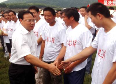 丹江口市举行隆重的移民一线”火线”入党仪式荆楚网丹江口1日讯(通讯员许光泽)烈日高悬,党旗飘扬。1日下午3时,丹江口市委组织部在丁家营镇二道河库区河畔举行了隆重的移民一线”火线”入党仪式。来自全市9个南水北调中线库区外迁移民乡镇办的37名移民代表和移民干部代表庄严宣誓,来自全市各乡镇的200多名党员干部重温入党誓词,丹江口市委以此向中国共产党第89个生日献礼。宣誓仪式上,市委书记郭新明与移民先锋代表亲切握手并做重要讲话,对新老党员寄予厚望,表达了丹江口市委市政府按期完成南水北调中线移民搬迁任务的决心和信心。