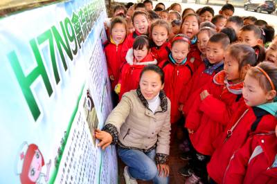 2017年2月28日,湖北省十堰市郧阳区柳陂镇中心小学老师向学生宣讲预防h7N9禽流感知识。(图1-4)