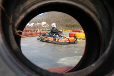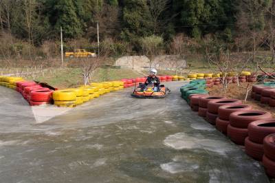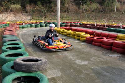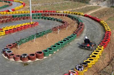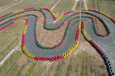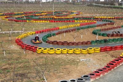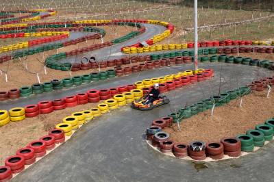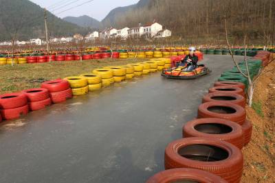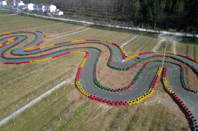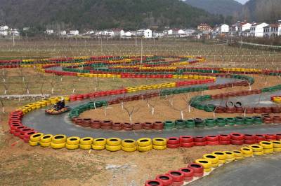 2017年2月27日,宜昌市夷陵区黄花镇上洋村花卉基地新建的迂回跑跑卡丁车游乐项目建成投入使用,这条跑道全长800米,两边由5000个废旧轮胎作导向护栏,游客可以在体验驾车乐趣的同时欣赏花海。视界网 张国荣 摄