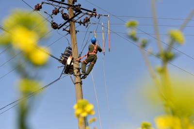 3月1日,在老河口市仙人渡镇范湾村3组,来自老河口市供电公司的施工人员对10千伏仙镇二回线鹤58线路范湾支线进行升级改造,全力保障当地村民春耕期间可靠用电。图为施工人员在改造老旧的电力线路。