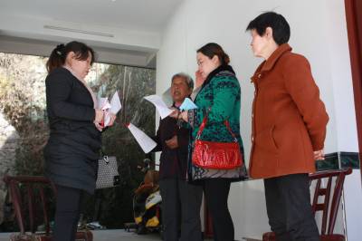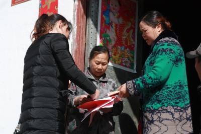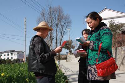 政策入户 3月1日,竹溪县水坪镇财政所的财政专管员在农户家里、田块地头,为农民宣传种粮补贴向耕地地力保护补贴转变时期的惠农政策。她们通过讲解耕地地力保护补贴标准、计算方法、拨入“一卡(折)通”的文字标示等方式,让农民熟悉党的惠农政策。(视界网 王忠春 摄)