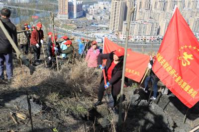 3月2日,竹山县城关镇财政所12名党员干部手拿铁镐等工具来到城关镇莲花村莲花塘山坡上开展“爱我生态家园,学雷锋见行动”主题党日活动。当日,该镇各机关、社区100多名名党员干部在荒山上度过了一个意义非凡的主题党日社会实践活动。据了解,近年来,竹山县以堵河为轴心,围绕营造“两岸青山如画廊,一河清水似玉带”的绿色家园目标,重点抓好区域内荒山绿化、村庄绿化、山体绿化、河堤绿化、景观绿化工程,计划完成人工造林任务2万亩。